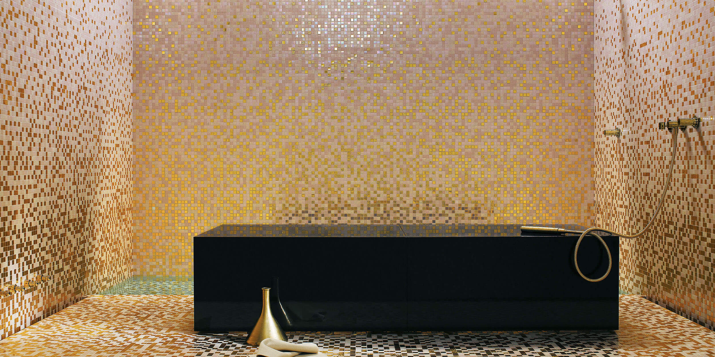 Bisazza zählt zu den weltweit bekanntesten Herstellern für luxuriöse Glasmosaik und Zementfliesen. Die italienische Marke steht für außergewöhnliches Design, exakte Verarbeitung und brillante Farben: von zarten Pastelltönen bis hin zu kräftigem Goldmosaik.