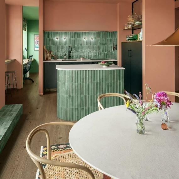 CROGIOLO LUME VERWANDELT GRES IN GLÄNZENDE UND VIBRIERENDE MATERIE UND FEIERT DAS HANDWERK DER MAIOLIKA. DIE FARBE IST PROTAGONIST DER GESAMTEN SERIE, DER SICH ZUM IKONISCHEN FORMAT 6X24 DAS FORMAT 10X10 UND DAS 3D-DECOR HINZUGESSELLT.