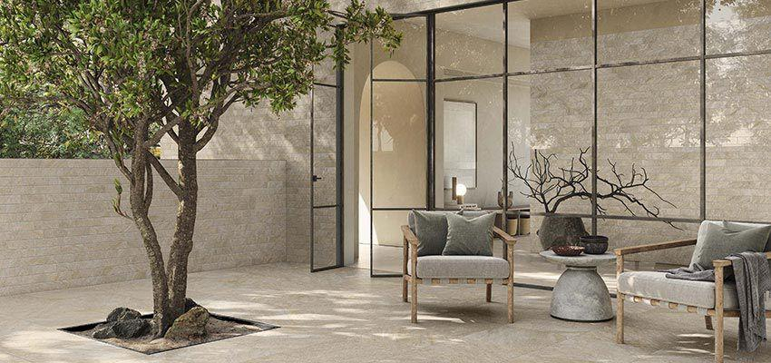 Inspiriert vom natürlichen Charme von Stein bietet die neue Petra-Feinsteinzeugserie die Wärme und Schönheit von Quarzit in einer zeitgenössischen Tonart und unterstreicht seine Eleganz und Stärke. Raffinierte Schattierungen von Erde und Sand, neutrale und graue Farben, Farben mit einem modernen und natürlichen Design, werden mit der von der Zeit gebauten Unvollkommenheit kombiniert. Eine Serie, die die faszinierende Schönheit von Quarzit, die Robustheit und Vielseitigkeit von Feinsteinzeug vereint.